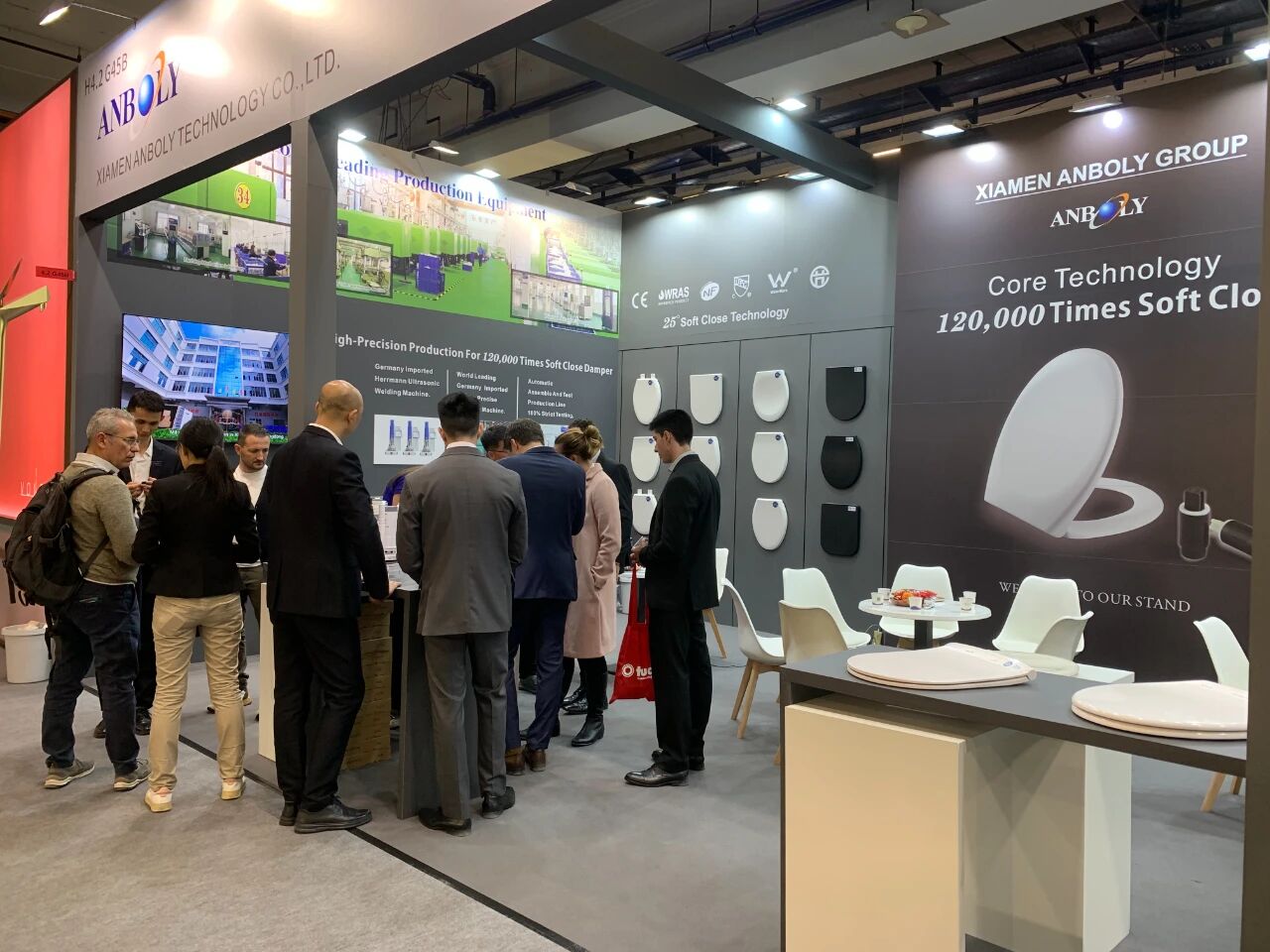 厦门安百利带来全球领先核心技术12万次强压寿命的缓降盖板,超静音一字阀!展现创新的力量,为大家呈现一场卫浴盛宴!欢迎全球客户朋友,我们在4.2号馆G45恭候您的到来!